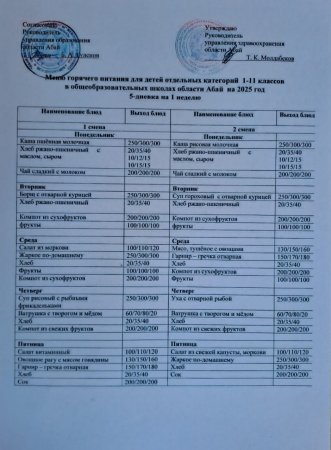 2025 жылға арналған Абай ауданындағы жалпы білім беретін мектептердің 1-11 сыныптардағы жекелеген санаттағы балаларға арналған ыстық