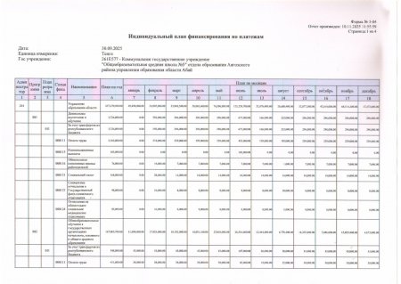 Индивидуальный план финансирования по платежам