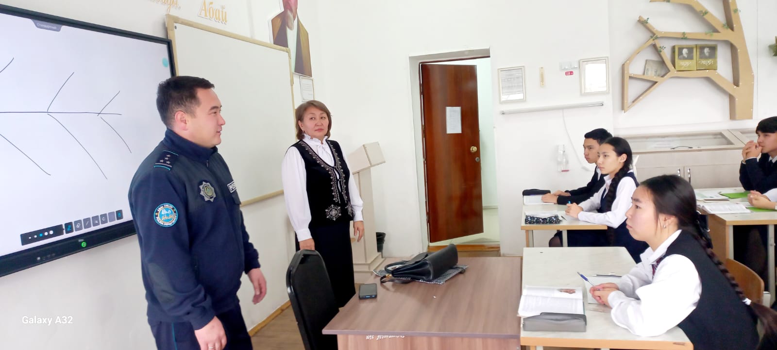 Ағымдағы жылдың қараша айының 13 күні Аягөз ауданының ПБ ювеналды полиция тобының қызметкері полиция капитаны Ұ.Шора Аягөз қаласы "#5 жалпы орта білім беретін мектебі" КММ-де 8-11 сынып оқушыларымен “Тәртіпке бағынған құл болмайды” тақырыбында жиын өткізіп, түсіндірме жұмыстарын жүргізді. Іс-шараға ДТІЖО Мукашева Баян Дауркеновна қатысты.
