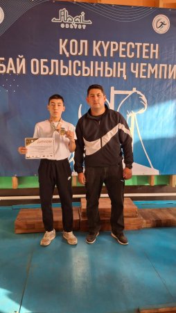 Абай облысының жасөспірімдер арасындағы армрестлингтен қос сайыс бойынша чемпионатында «№5 жалпы орта білім беретін мектеп» КММ-ның оқушысы🥉 Тұрысбек Сержан – 55 кг салмақ дәрежесінде III орын иеленді!Бұл жеңіс – табандылықтың, еңбектің және намыстың жемісі.