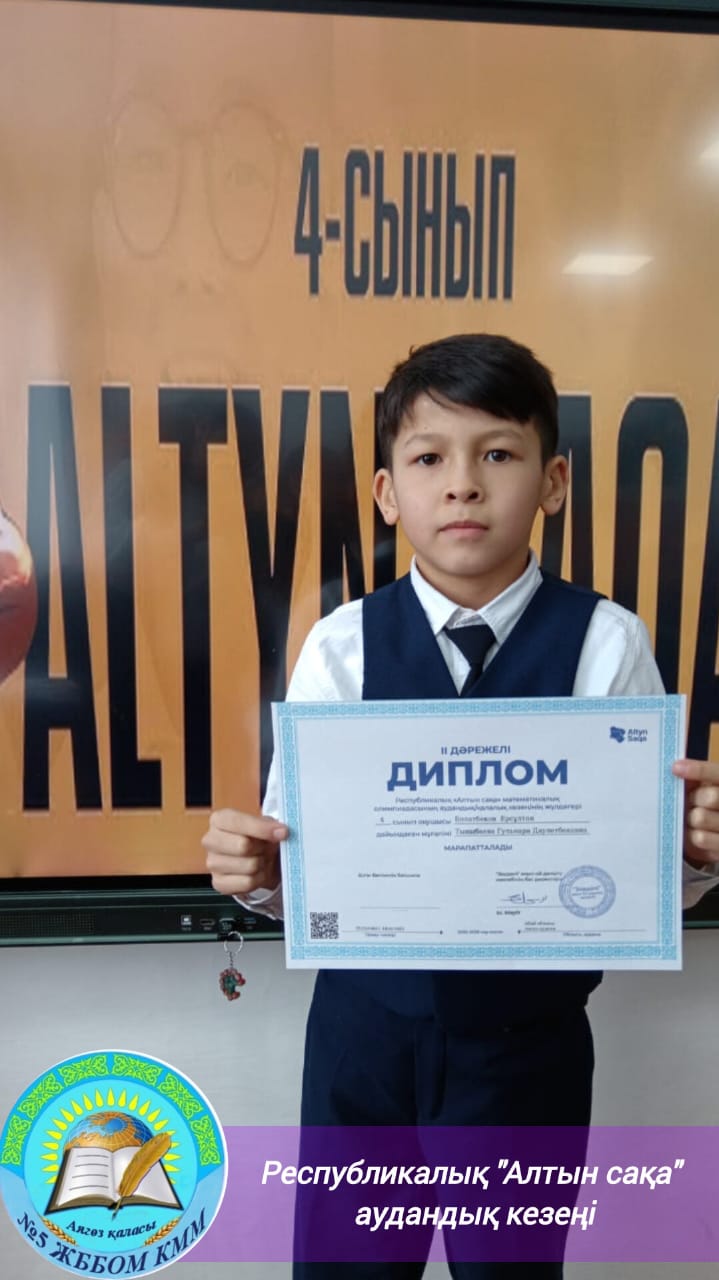 3-4 сыныптар арасында Республикалық “Алтын сақа” математикалық олимпиадасының аудандық кезеңінің жеңімпаздары:1 Дәрежелі Диплом Илял Азамат.
