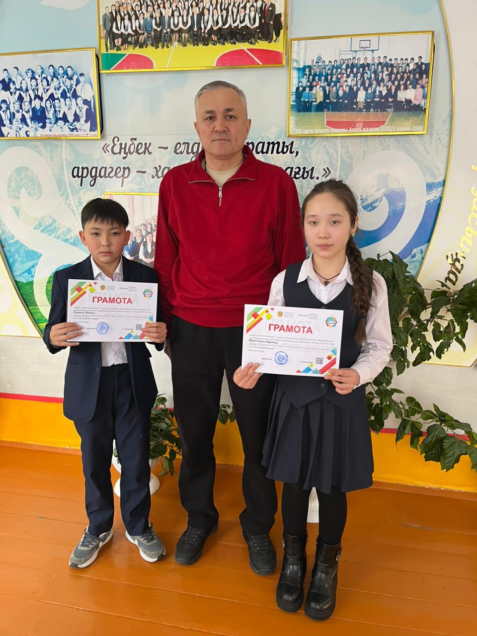 Бурабайда өткен республикалық ғылыми-зерттеу жобалары байқауында 7-сынып оқушылары Салихан Алихан мен Маулетқазы Нұрайша ерекше жеткен жетістіктері үшін Мақтау қағазымен марапатталды.Бұл жетістік – оқушылардың табанды еңбегі мен ізденісінің, сондай-ақ жетекшісі Буршакбаев Мухит Едиловичтің кәсіби шеберлігінің нәтижесі.